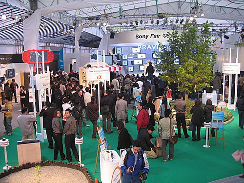 咳咳!回歸正題,今年的Sony Fair從4月3日~13日截止,地點一樣在台北101與世貿三館中間的廣場。足足有11天,橫跨兩個假日,跟資訊月一樣長。今年的主題還是以高畫質影音為主要內容,穿插Sony集團在台各子公司的資源,而且現場完全不會販售(雖然Sony Style就在隔壁的101啦)。這種耗資千萬元,而且還不販售的嘉年華會,大概也只有Sony才有這個手筆吧!