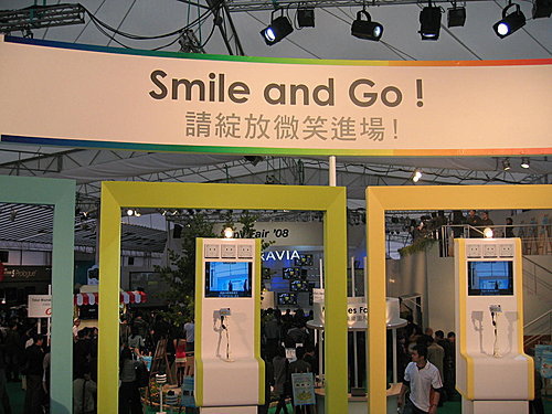 門號進去沒多久,有個自動照相的設備。請綻放微笑進場,放心啦,這種免錢的展示一定微笑進場的,男性朋友會笑得更開心啦