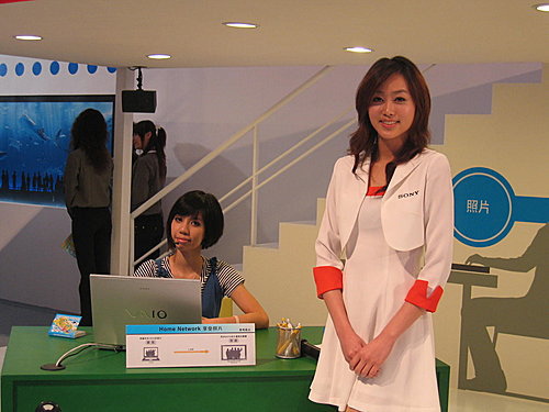 雖然在Sony Fair上,沒看到太多的新品,不過整個佈置非常用心,還穿插許多的活動,Sony BMG的藝人像是王力宏、黃義達、盧學叡、柯有綸、蔡旻佑等也會利用假日的時間舉辦小型歌友會。而且男性朋友們最愛的...........女性解說人員,這裡好多呀!